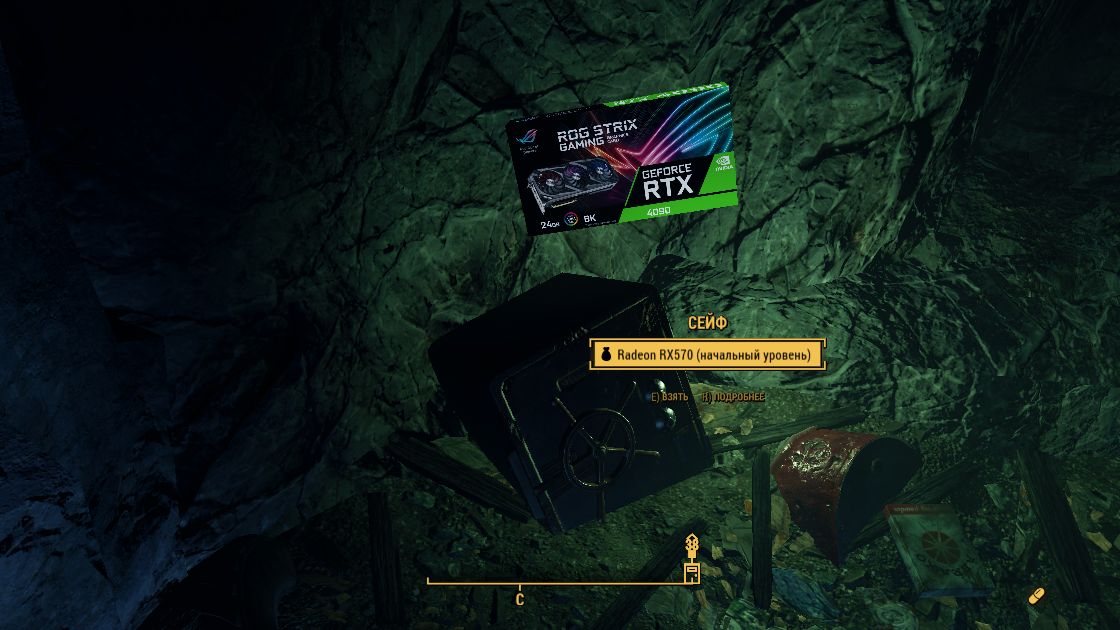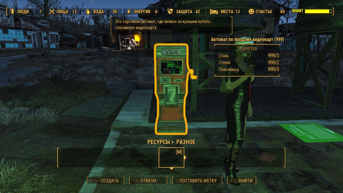Плюс ко всему можно построить Торговый автомат VGA, в нём можно купить случайную видеокарту за 5000 крышек или продать имеющиеся видеокарты.