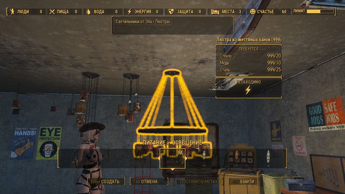 Каждый из них можно включить и выключить простым взаимодействием, так что теперь можно гасить свет перед сном. Ура! Коробки, банки и стёкла светятся при подаче питания, создавая уютную атмосферу во время холодных радиационных бурь. Светильники также дают хороший яркий свет, чтобы вы могли легко видеть, чем вы занимаетесь...по ночам.