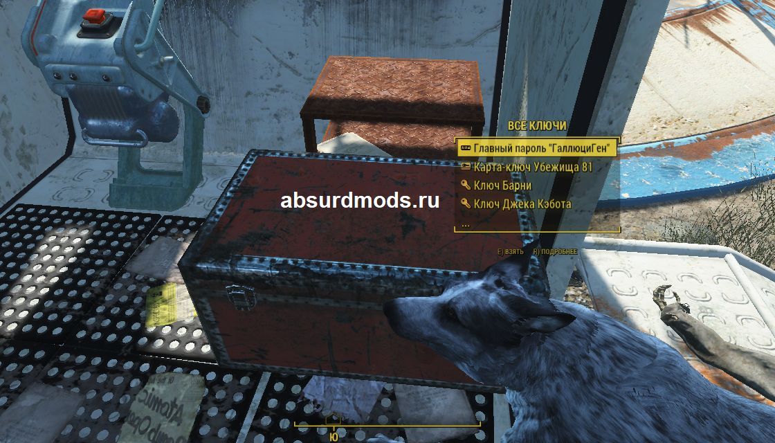 Мод добавлет все ключи ванильной игры. Ключи находятся в сундуке на посту охраны Убежища 111.