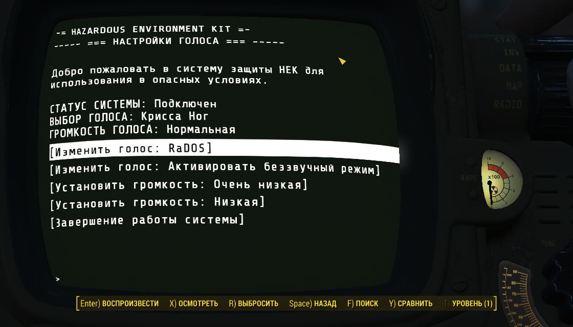 Этот мод позволяет улучшить Пип-бой так, чтобы он подавал звуковые предупреждения при возникновении различных опасностей в окружающей среде, подобно защитному костюму HEV из Half-Life.