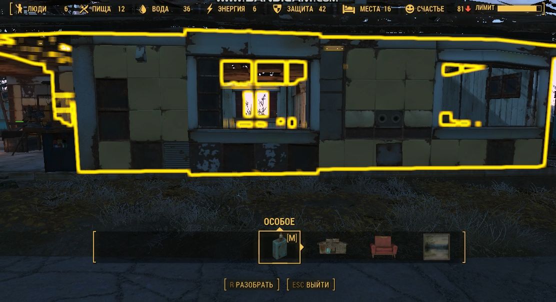 Все статичные объекты - в базовой игре именно они формируют прекомбайны. Возможность их разборки зависит от того, включены ли прекомбайны. (В разработке)