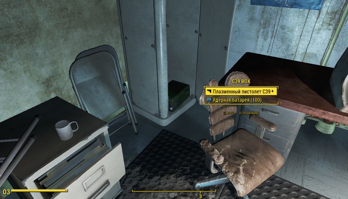 Плазменный пистолет C39 (версия 1.0) находится в Убежище 111 с самого начала игры.
